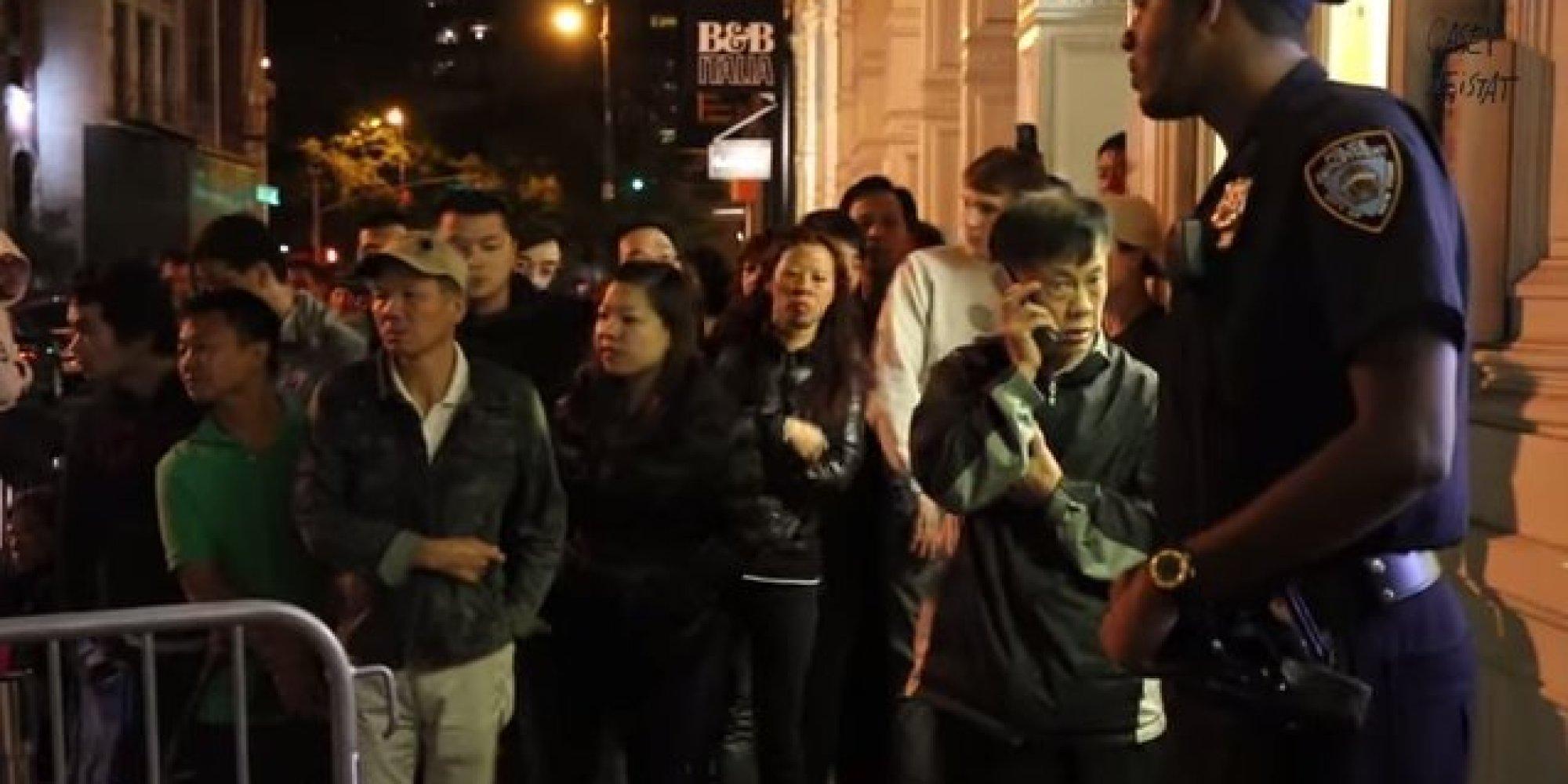 For some, the annual pilgrimage to an Apple store to buy a glossy new iPhone is purely for the spectacle. Die-hard fans spend hours outside to be a part of the fanfare and become the first to get their hands on latest device. But a disturbing new … http://www.huffingtonpost.com/2014/09/22/video-new-york-iphone-6-line_n_5861498.html